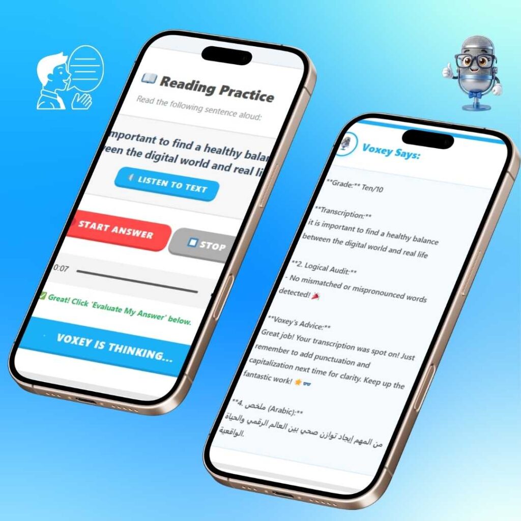 Stop guessing! Voxey listens to your voice, analyzes your accent, and gives you a detailed evaluation instantly. See your mistakes, read the correct transcription, and get personalized tips to sound like a native.